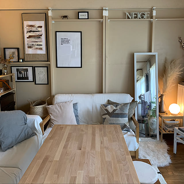 皆さんがクリスマスの素敵なpicや年末の大掃除picをあげてる中、今年最後のDIY🔨 変形リビングで奥行きはあるのですが猫のトイレなども見えてしまうのでちょっとエリアを分けてみました💡 格子窓を作ってみたかったのでチャレンジ🔨ただ色は最後まで悩んで板の部分は最近のお気に入りオイルステインと言うのもありだったんですが今回はブルーグレーで💡どう見ても空気清浄機と色かぶり💦
