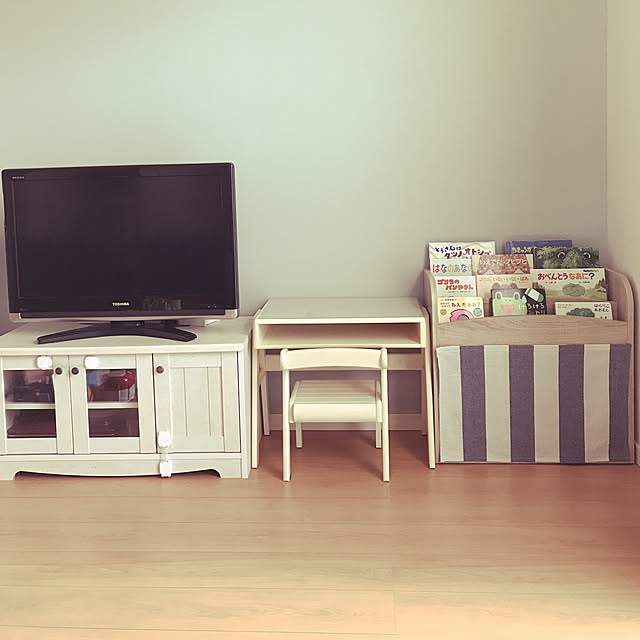 とりあえず完成。 上に一段追加で人工芝をひいてみました。 やっぱり表紙が見えると子どもの食いつきがいい。上の子の時に気付けばよかったな。