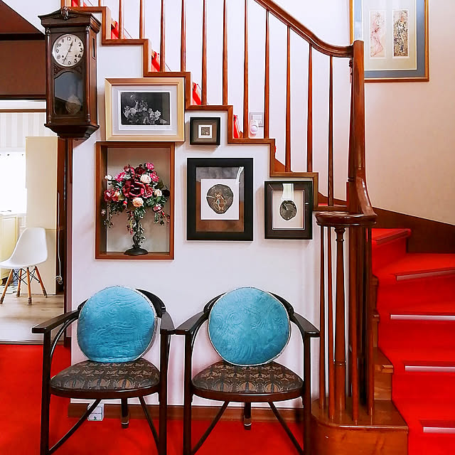 階段アート* 額縁を増やしたのでちょこっと配置かえました! 目標は全方位の階段壁を額縁で埋めることです✐🖼