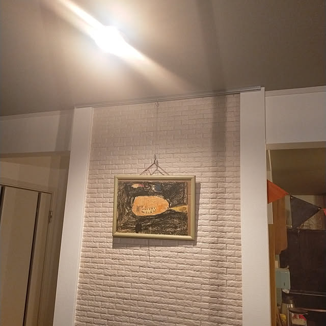 リビングから三階へ上がる階段の前の壁に子どもが幼稚園で描いてきた絵を飾っています。