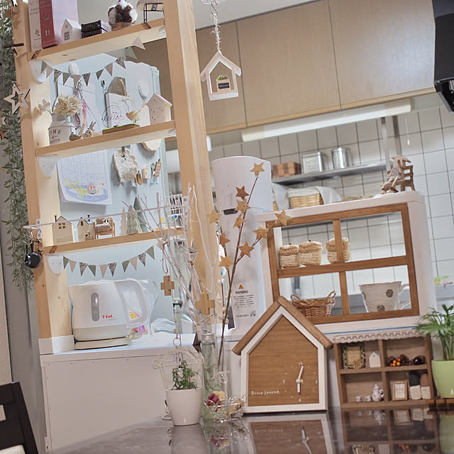 気づいたら、お気に入りコーナーのイベントがもうすぐ終わりなんですね💦 なので、こちらも投稿したいと思います✨ リビングから見たキッチンです。 ディアウォールやテーブルにお気に入りを並べて、眺めている時間が幸せです💕 ディアウォールのディスプレイは、季節ごとに少しずつ変えてます😊