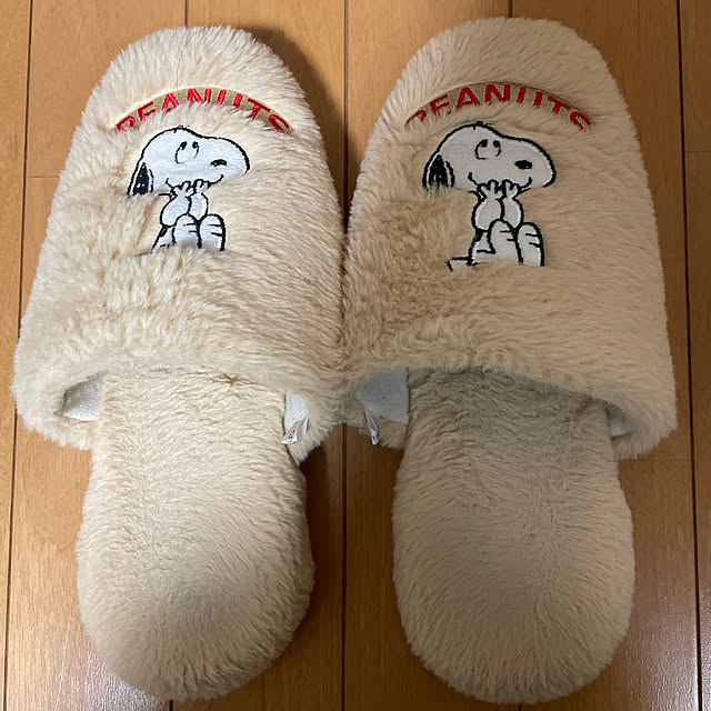 妹が買ってきてくれた ユニクロのスリッパ◎ チャーリーブラウンが可愛い(^ ^)🤎🤍