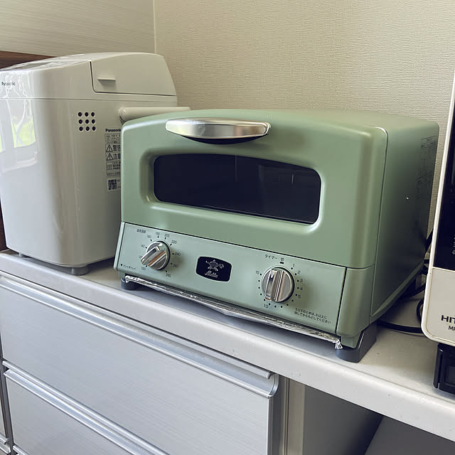 アラジンのオーブントースター 買いました✨ あ!今回はホントꉂ( ᵔ̴̶̤᷄∇⃚⃘⃙̮ ᵔ̴̶̤᷅ )キ”ャ′‵′‵ (前回はガチャガチャ) バルミューダかアラジンか悩みに悩んで バルミューダのお掃除方をYouTubeで見て断念😱メンドイ💦 最新の4枚焼きはスペースの関係上 ココに入らないので2枚焼きにしました😏 可愛ええ💕 が、めっちゃ本体が熱くなるのにΣ(゚д゚;)ビックリ💦 急遽 配置換えに(•́ω•̀;≡;•́ω•̀)アタフタ 狭いキッチンなので、また色々悩みの種が増えました( ´•ᴗ•ก)💦