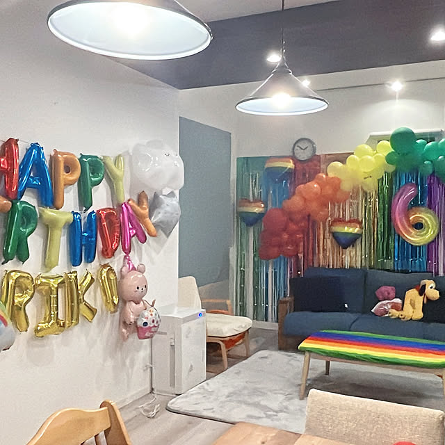 いつもは誕生日当日の朝には飾りつけが出来てるんですが、