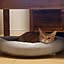 10分でできる100均リメイク 木製のキャットタワーにマットがついていなかったので、冷たくないようにと、滑らないように、ダイソーのピタッと吸着マットを敷いています。 木の形に合わせてカットして敷いただけなので、すご〜く簡単リメイクですが😁 しっかり吸着してくれるので、猫が昇降してもズレません👌