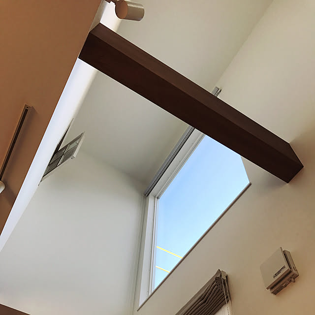 イベント参加♪ 我が家のリビング~吹き抜け部分の天井はシンプルに白にしています😊 近くで見ると斑模様のようになっていますが、この模様が見えるか見えないか…といったのがお洒落に感じます。 北側道路の土地なので、なるべく白を貴重にしています。そして、ほぼダウンライト!吹き抜けと、2階廊下の間接照明がお気に入りです✨