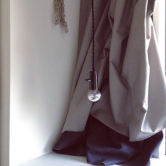 カーテンと照明は自作。寝る娘に眩しくないようにレフ球。アロマスプレーができるようにカーテンはコットンに。