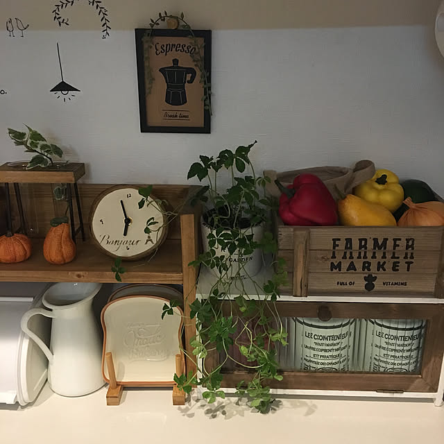 おはようございます 朝からすごい雨ですが、皆さんの地域は大丈夫でしょうか? 最近キッチン背面辺りを見直してます 乾物をカゴに入れてましたが、実はサイズが合わずはみ出たりしてました それをカーテンで隠してたので、ずっと放置してましたが、 ニトリのインボックスがオフホワイトでそんなに違和感なく置けるかも、と思って カゴをやめてカーテンも取りました インボックスを置いたら上部に隙間が出来たので、そこに1枚棚を付けたらトレイ置きに丁度いいサイズの棚になりました♪ 取ったカーテンは結局下に付け直したんですが、ここも徐々に見直していこうと思ってます いまはカセットコンロや非常食を隠してます 飾り棚の上も少し変えました 断捨離とまでは言えないけど、少しずつ物を整理してすっきり暮らしたいと思ってる今日この頃です(*´꒳`*)
