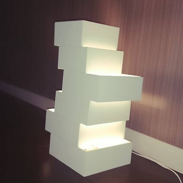 RCに初投稿した自作ライト。実は、BeauBelleさんで購入したキシマを、買って間もないのに相方クンが一つ割ってしまい…残った灯具を使ってます。木の枝は、子どもと公園で拾ってきてお家型に組み、麻ひもでしばってあります。