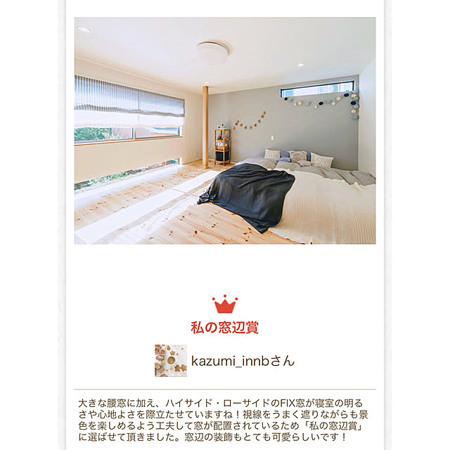 国産木材のある暮らし イベント投稿でありがたいことに、受賞させていただきました✨ 今後の家づくりの励みになります(^^) 楽しく暮らしながら、日々の生活や自分自身もアップデートできるように頑張りたいです! 憧れのRoomClipステッカーと記念撮影。 Amazonギフトカードもありがたく使わせていただきます✨ 国産木材のある暮らし https://roomclip.jp/contest/1549?utm_campaign=app_sns_share&utm_medium=social
