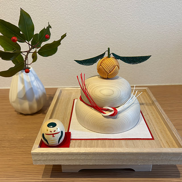 明けましておめでとうございます🎍 今年もよろしくお願いいたします😊 去年1年育てた葉牡丹🥬 大きめの枝をメインに飾りました✨️ ほんとはもう少し浅い器に生けたかったのですが、茎が直立するのでなかなか難しいですね💦 考えた挙げ句、SHEINのランタン型キャンドルホルダーにフラワーベースを入れました マステで黒くしています● モダンな感じになったので、ラコレのウッドスタンドトレーを三宝代わりに鏡餅を置いてみました☝️