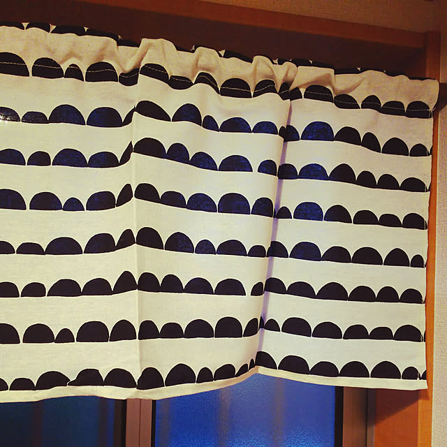 裏の家の二階から我が家のキッチンが丸見えだったので、ダイソーで突っ張り棒とはぎれを買って来てカフェカーテンつけました☻ ミシンの調子が悪いので全部手縫いでーす*\(^o^)/* 強度もいらんしね*\(^o^)/*