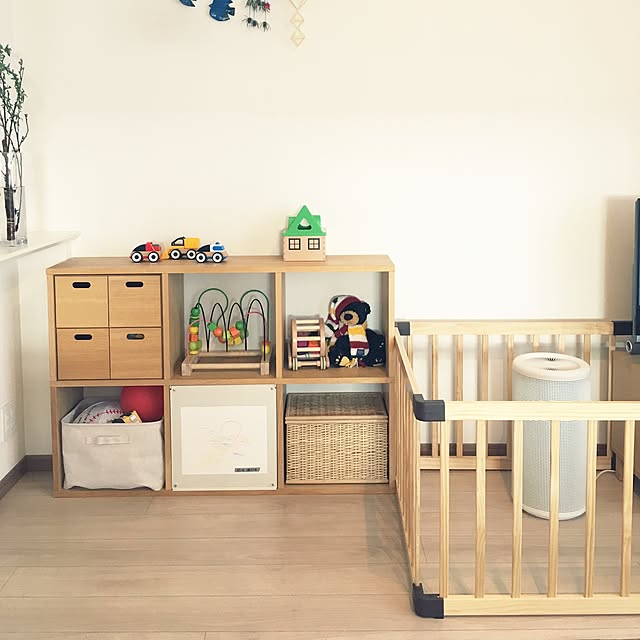 おもちゃ箱はIKEAのトロファスト、となりにキッズデスクのレットを並べています。
