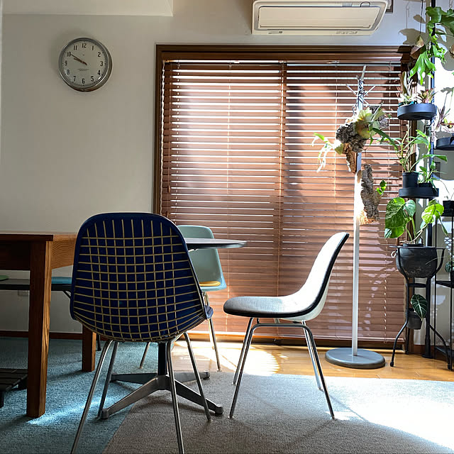 リビング横の寝室からの眺め。在宅勤務なので机の上は散らかし気味、スリッパも脱ぎ散らかしてたり。 リプロダクトのイームズチェアは中古で買ってもう10年、手放そうかとも度々思いますがこの後ろ姿見ると手放せなくなります(・ω・`)