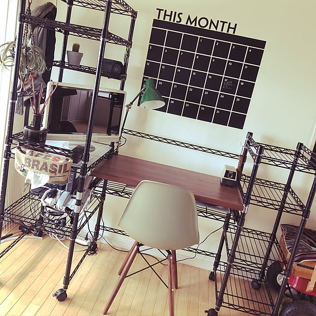 めちゃ昔に買ったオーダーのホームエレクターの棚を足して机にしました🙌 ホームエレクターは丈夫で劣化がないので愛用しています😊