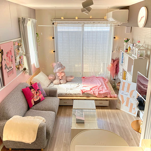 玄関を開けると! リビングまで丸見えだったので、ディアウォールで柱を立てて、ジャバラ扉を設置してます。 宅配業者さん来ても、締めないことのが多いんだけど...(*ノω<*) アチャー でも、やっぱりあるとないとでは、ある方が(♡ˊ艸ˋ) エアコンの効きも違います。 下駄箱もリメイクしたいな〜と思いつつそのまま月日は流れ(笑) このままになりそうな予感しかしない