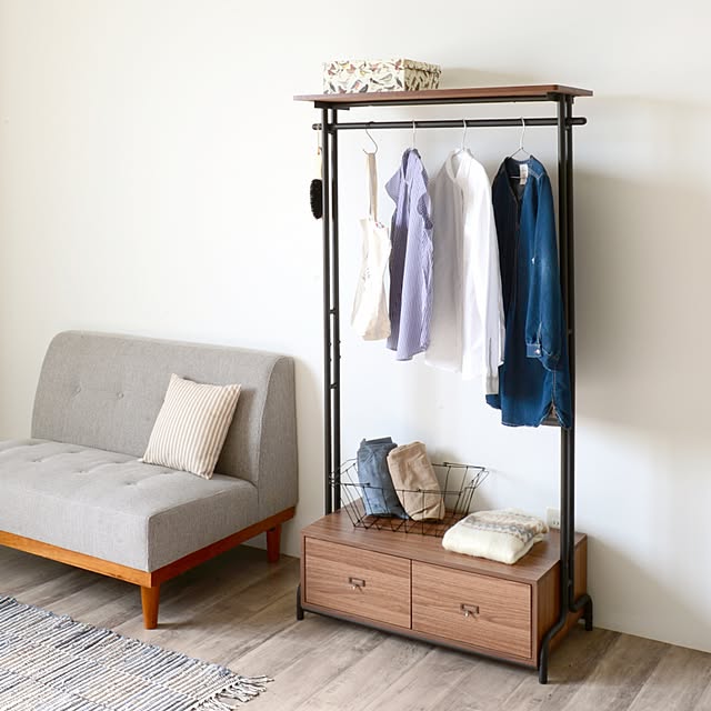 シルバーのスチールラックをつや消しブラック塗装し、板を付けました。 つや消しブラックで塗るとイメージがだいぶ変わります。