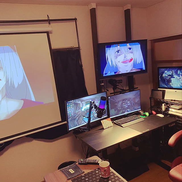 モニターアームでモニターを揃えたことで、少し小さいデスクが有意義に活用できるようになりました!