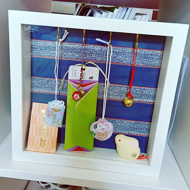 安産祈願やお宮参り、家族で旅先で頂いたものなどの特別な御守や、その旅で一緒に迎えた子どもたちの干支アイテムなどを飾っています✨