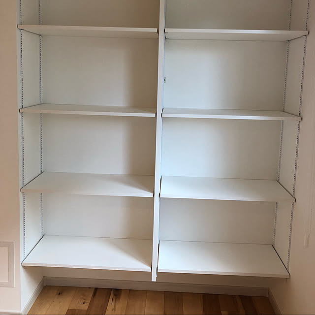 入居にリフォームが間に合わなかったらしく、クローゼットの扉を取り付けられずロールカーテンなのですが、普段はこうやって上の棚だけロールカーテンで隠しておけるし誰か来る時はカーテンを下ろせるし、扉が開く場所も取らないので便利です✨