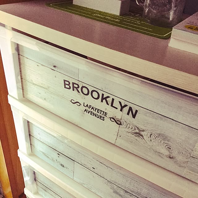 収納ケース目隠し⸜(*ˊᵕˋ*)⸝‬ 以前見たcochonさんの衣装ケースを参考に♪ クリアファイルを切って紙ナプキンを挟みました♡ 我が家のこのケースの引き出しの形的に、全てを隠すことはできなかったけど…雰囲気変えれて良かったかな(ˊ ˋ*) デコパージュにハマっていた時に買ってあったマリメッコのキッピスのナプキン♡出番があってよかった〜! この目隠しの前は、包装紙をそのままテープで内側から貼っていただけで、すぐ破れてしまってたけど、クリアファイルに挟めば丈夫で、簡単にまたイメージチェンジできるのでおすすめです(´∀`)