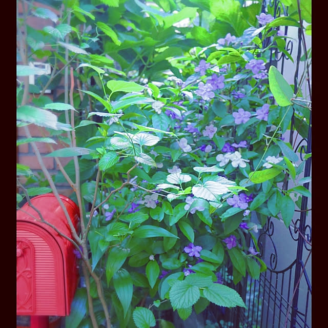 門柱周りにはずっと植えたかったニオイバンマツリ🤗ヒョロヒョロで葉っぱもなぜか開かないけど蕾は沢山つくのできっと元気なのでしょう🤗w