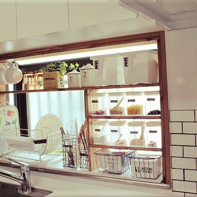 味気ないキッチン出窓の外もグリーンがあると見た目に涼しげかと思って、初めてアサガオを這わしてみましたが…