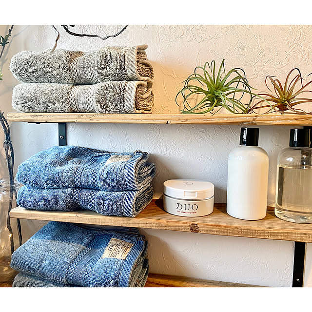 モニター投稿☺︎DUOクレンジングバーム☺︎ DUOの置き場所はここにしようかな〜 毎日使いたいのですぐにサッととれるよう あえてしまわずオープンな場所に。 パッケージもシンプルなので我が家の無垢×カラーインテリアにも馴染んでくれてる〜