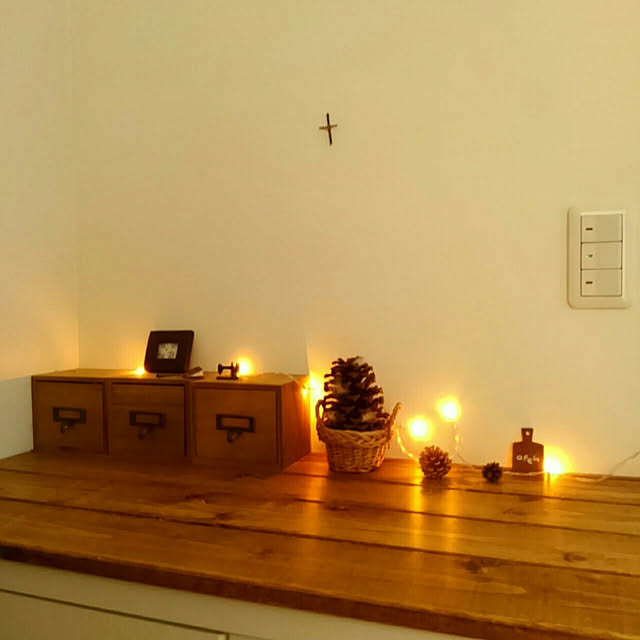 玄関の靴箱の上。何か気に入らないのでどうするか思案中…クリスマス感も欲しいなぁ!