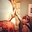 子どもの頃から愛用の飾り棚、今は寝室に思い出のものや、お気に入りを置いてます。 父の形見のインク瓶、集めたアンティークレースで作ったコラージュや小瓶、小さなしましまの小物入れは、革でできています。娘が昔、指輪入れにと作ってくれました♪