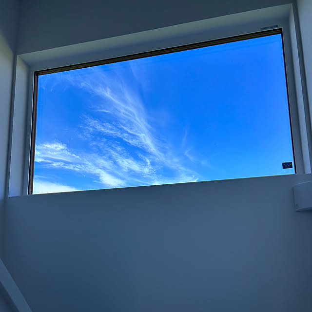 天井の壁紙は、ストライプにしたいなと思ってたんだけど全面この色にして良かった♪ リビング側から明かりとり窓に映るブルーが凄くキレイでお気に入り!