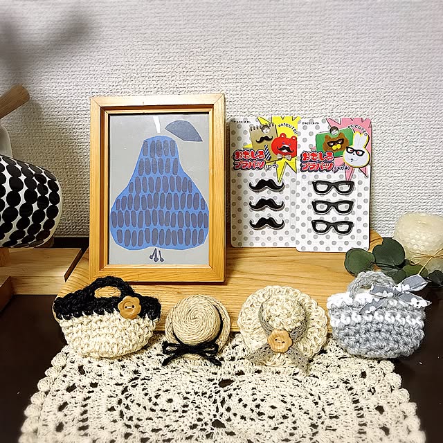 もうすぐ我が家にやってくるしろくまさんのためにちまちまと作ったおめかしグッズです( ¨̮ )