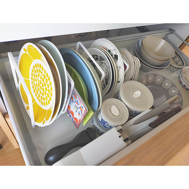 夏のスペシャルクーポンキャンペーン当選の戦利品その③ towerのディッシュラック。 今まで使ってたものは皿1枚につき1仕切りだったのでこれで収納力が一気にアップ。スペースが生まれたのでリピート予定です。