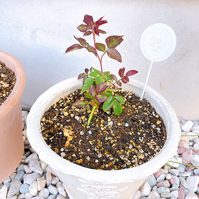 薔薇デビューしました🥀 🌹に憧れはあっても 育てるの難しそう 🐛がつきそう(虫苦手😥) と躊躇してたんですよね💧 なのに この🌹プラムパーフェクトに一目惚れ😍 店員さんにノウハウ聞きまくり バラ用品一式揃え 気付いたら車に乗ってました😅 枯らしてしまいがちなのに 大丈夫か私😱 🌹綺麗に咲かせている先輩方に 伝授して頂きたい🙏