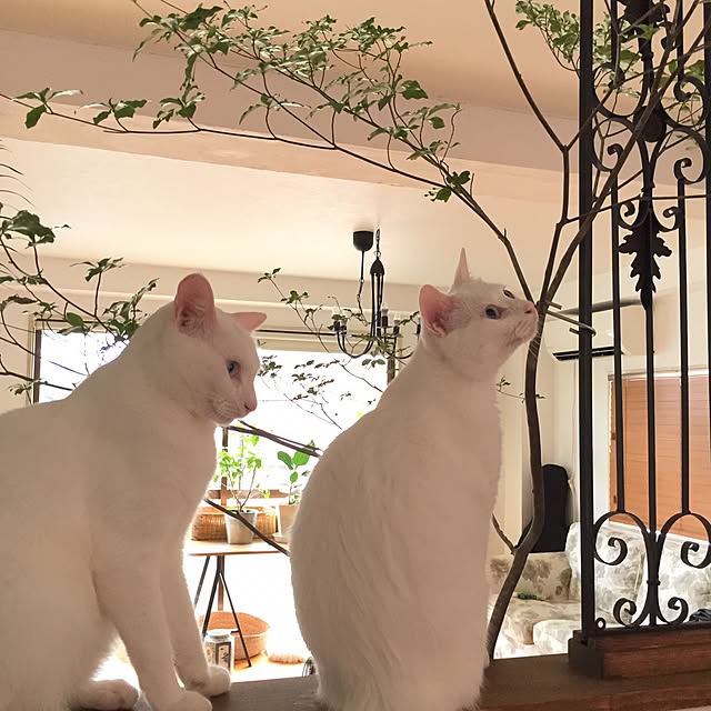 ウッドブラインドの紐(羽根と羽根を繋いでるやつ)に3度も尻尾をひっかけ、ワーワー💢💢💢ギャーギャー💥💥💥