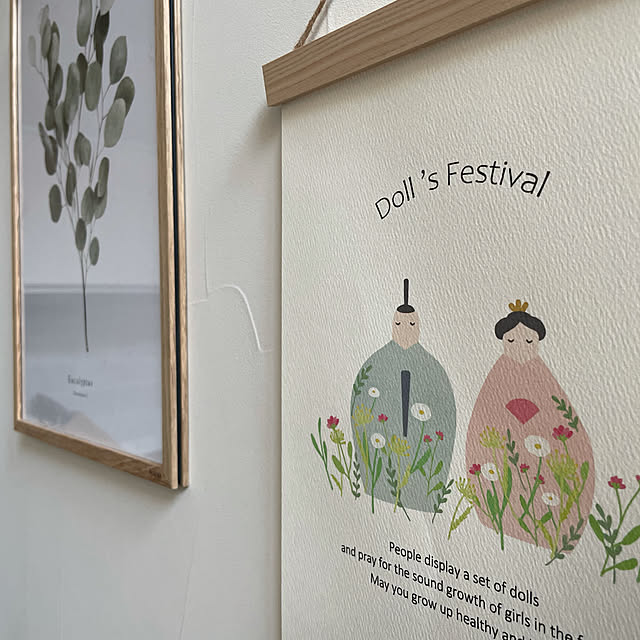 この左右のA3フレーム設置は壁に穴を開けフック使用→コマンドフック壁紙用使用→今回壁紙用シール+ファスナーの合わせ技使ってます(4枚目pic)