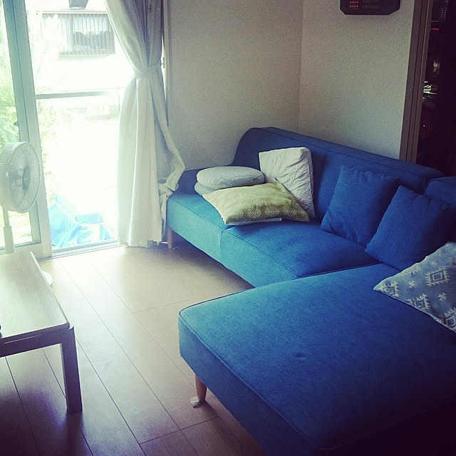 カウチソファ購入しました! これでやっと全員座れる。 (以前は旦那が横になると誰も座れなかったの。。)