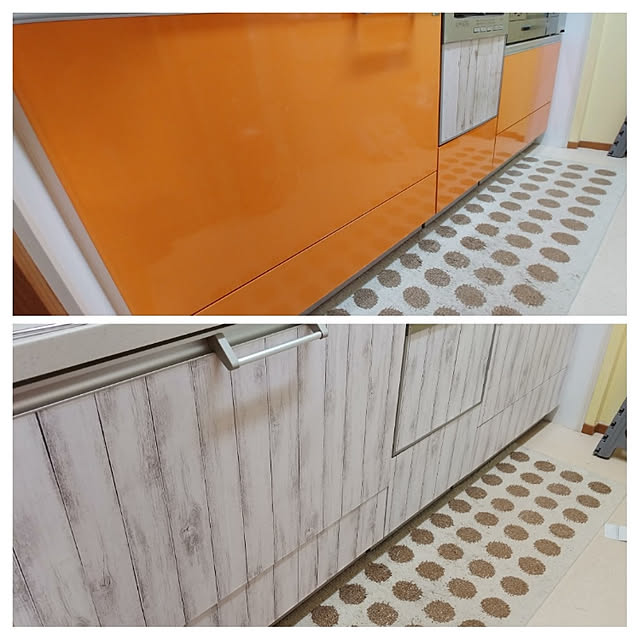 やっぱり隣の収納扉が斜めなのに、自作収納の扉がまっすぐなのが、ど〜しても気になって、ノコギリでギコギコ切って扉をつけ直しました😅