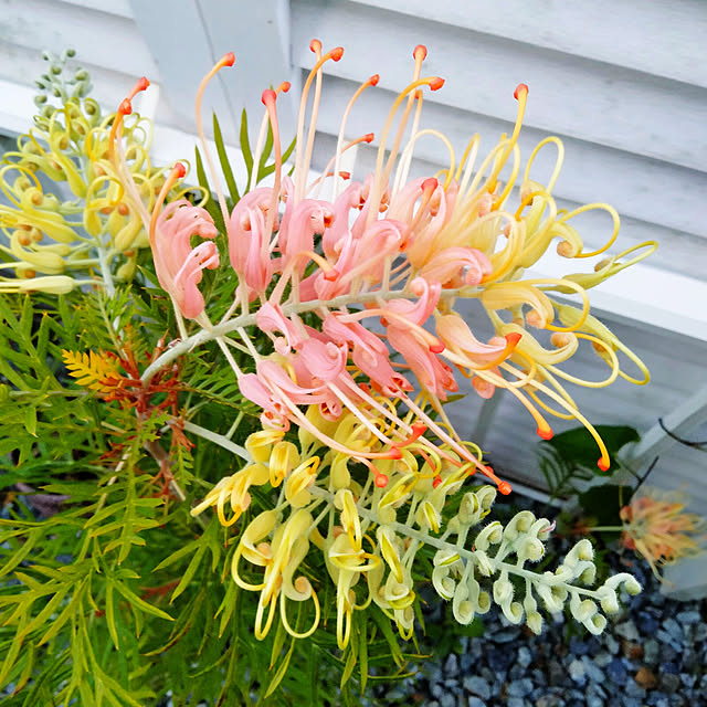 グレビレア、開花✿ ナニコレ凄い綺麗✨ 半年前くらいまで、こんな植物あると知らなかったな🤔 流行りのオージープランツ。 好きな時間は庭の植物の手入れをしている時ですね🏵
