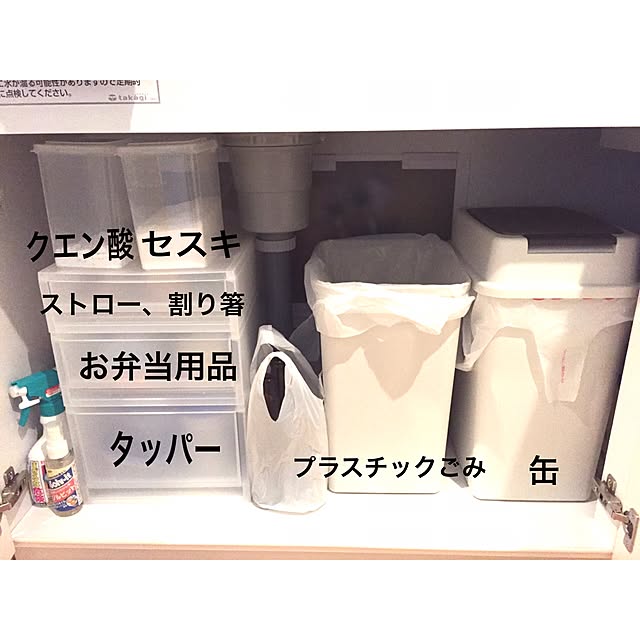 無印良品週間で買ったホワイトグレーのポリプロピレンケース。 スーパーの袋、ゴミ袋、生ゴミネットを入れました。 ゴミ箱横には生ゴミ用の新聞紙。 キッチンはまだまだ整理中です。