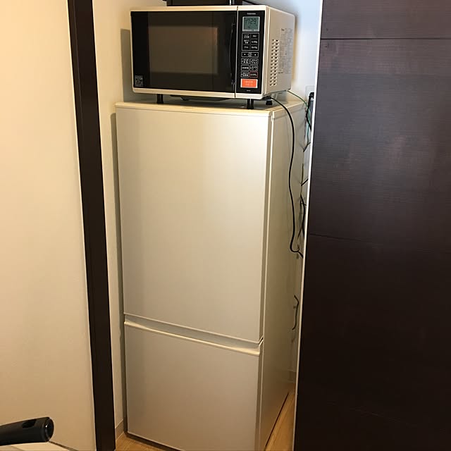 電子レンジはTOSHIBA。 他の家電とセットになっているのを購入したので自分で色を選んだわけではなかったけど、偶然他の家具と同じようなブラウンだったのでピッタリ合いました。 料理やお菓子作りに活躍してます😀