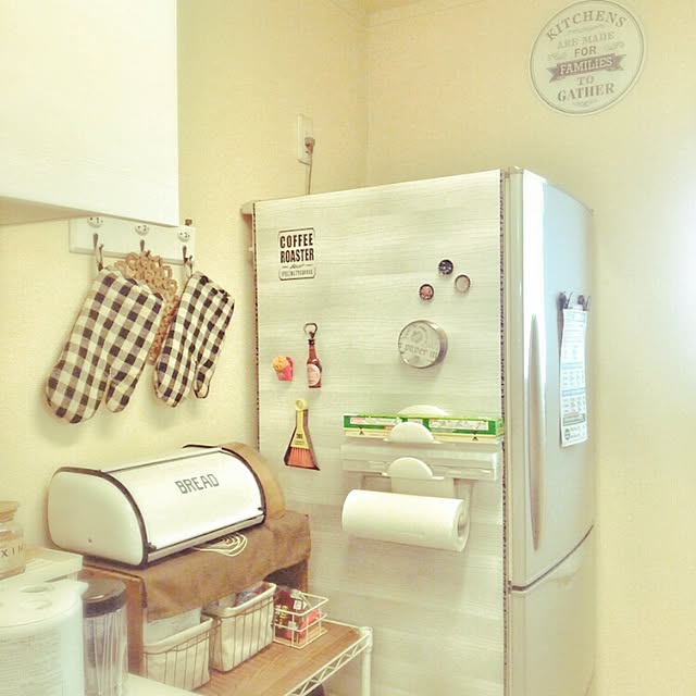キッチンもっとカフェ風にしたい🥺 ブレッドケース:salut! びん風ケース:セリア