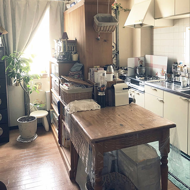 パイン材で、レンジが置ける、無垢の食器棚が欲しくて、、、