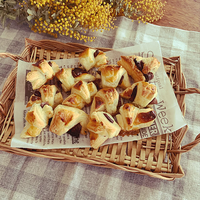 明日はバレンタインですね* 娘が作った友チョコにたくさんのいいね、ありがとうございました(*´▽`*) そのあまりのパイシートで、ミニチョコクロワッサン作りました! 明日、主人と父に渡そうかと思います(*^^*) 左のはキャンドゥで買ったジップバッグ、右はダイソーのラッピングセット(去年あたり購入)を使いました! どちらも中がツルッとした素材なので油分がしみなくていいと思います♪