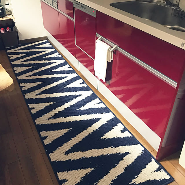 実際に2年程使われたキッチンマットが未使用のマットと並んで展示されており2年経っても全くヘタれておらず油はねのシミなども分からない状態だったので是非♪我が家にもお迎えしたいと思っていました😊✨