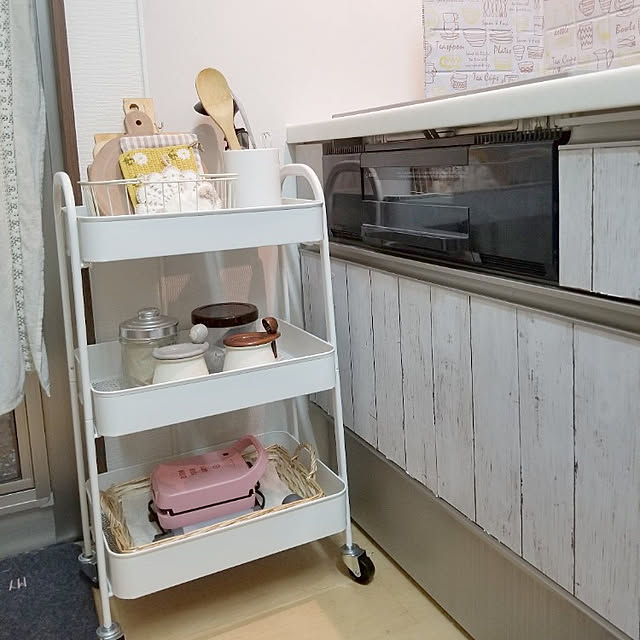 コロナに感染してから今まで以上にアルコール消毒を頻繁に使うようになったので、手荒れが凄くて🤲🏻クリームと一緒に以前RCショッピングで購入させていただいたワゴンにまとめて置くことにしました!後はお気に入りのマルチクリーナーなども😊2段目は保育園のコップやお箸、3段目は玉ねぎやじゃがいもなどのお野菜🧅と、隣にはお米を置きたい(予定)と思ってます👍🏻