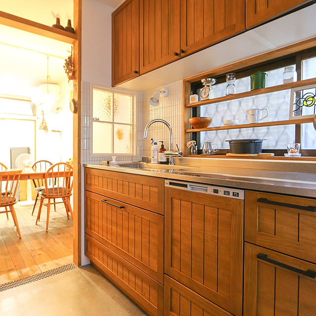 キッチンと同じ面材を使ってカラーを合わせることもできたのですが、男前要素も入れたくてあえて食洗機はステンレスにしました。