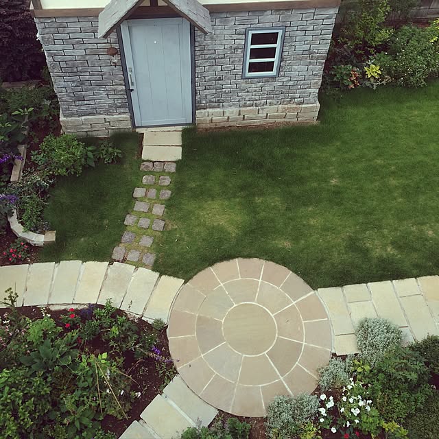 庭のサークル状のレンガは、小屋と家を結ぶ中心として作ってみたらどうかと提案して頂き、作ってもらいました♪o(^▽^)o