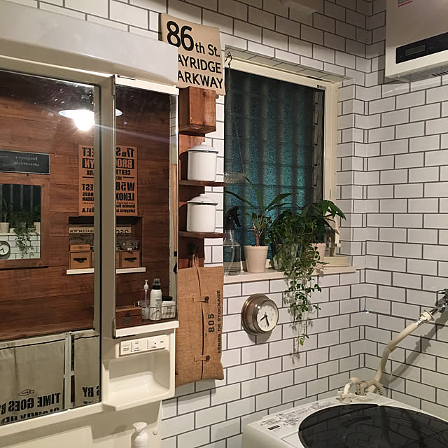 建売住宅の我が家のネックは収納です…∩・ω・*)ハイ 洗面所に下着やパジャマ(みなさん着てます?アタクシこの家に来てからやっとジャージを卒業しました(〃゚艸゚)プ♡)を収納したくてもスペースがなくて…得意のラブリコ&2×4材でなんとか…とも思ったけど、少しでも狭くなるのは嫌だったんです…元々狭いから!!笑 で、洗濯機の上に窓があるけど無理矢理棚を付けました!窓があるからかわいいブラケットは片方にしか使えなかったけど!!₍₍ (̨̡ ‾᷄⌂‾᷅)̧̢ ₎₎でもコレでシーズンオフのパジャマまでぜーんぶ収納できました♡便利&満足♡