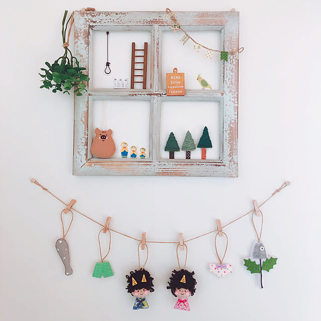 ドライフラワーの降り注ぐ 『ニッチ』 大きな窓のある ダイニングのニッチや ゆったり寝転がるソファーのニッチを 作りたかったのだけど スペース上諦めた でも こんな狭いスペースにも ほっこり可愛い ニッチ 作れたよ🤗